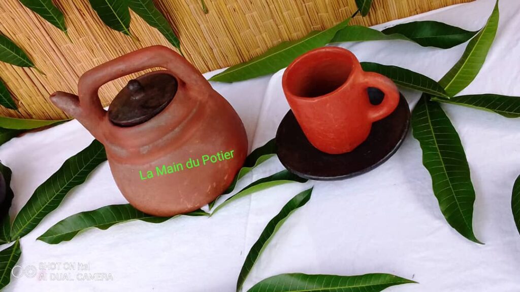 Après avoir travaillé comme secrétaire dans une entreprise de la place, Geraude a décidé de se tourner vers sa passion. Convaincue de l’importance de la culture dans nos vies, elle a créé » Ets La Main du Potier« , une entreprise spécialisée dans la production d’assiettes de cuisine, de tajine, de gobelets, de casseroles et d’objets décoratifs faits en argile.